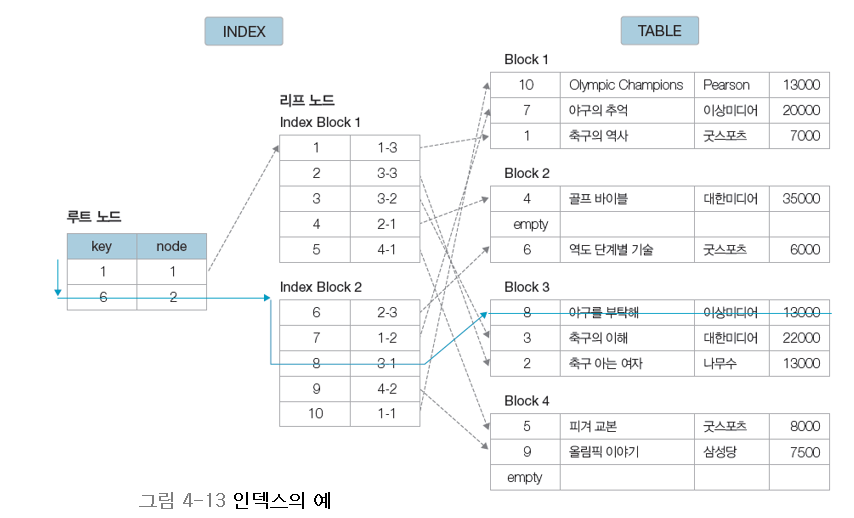 인덱스(INDEX, 색인) : 도서의 색인이나 사전과 같이 데이터를 쉽고 빠르게 찾을 수 있도록 만든 데이터 구조임