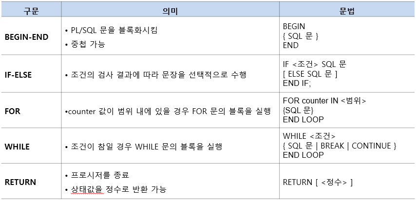- PL/SQL의 제어문은 어떤 조건에서 어떤 코드가 실행되어야 하는지를 제어하기 위한 문법으로, 절차적 언어의 구성요소를 포함함