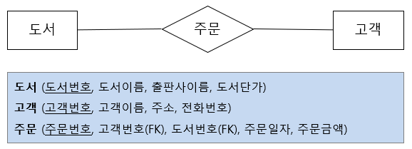 - 개념적 모델링에서 만든 ER 다이어그램을 사용하려는DBMS에 맞게 사상(매핑, mapping)하여 실제 데이터베이스로 구현하기 위한 모델을 만드는 과정