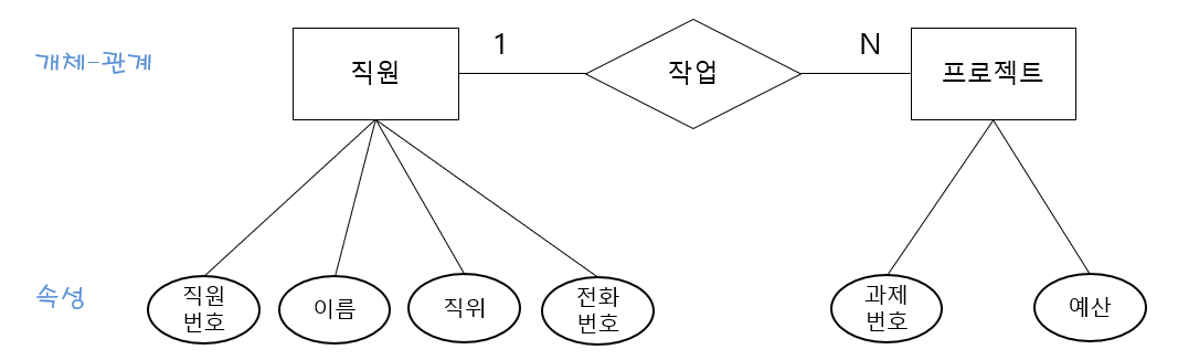 - 세상의 사물을 개체(entity)와 개체 간의 관계(Relationship)로 표현함