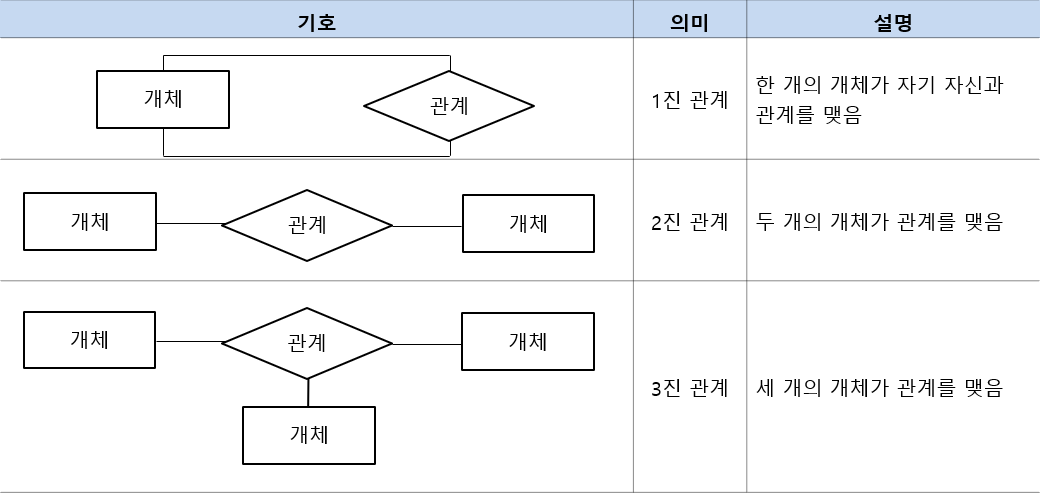 - 관계 : 개체 사이의 연관성을 나타내는 개념