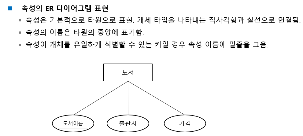 - 개체의 특성을 나타내는 속성(attribute)에 의해 식별됨. 개체끼리 서로 관계를 가짐