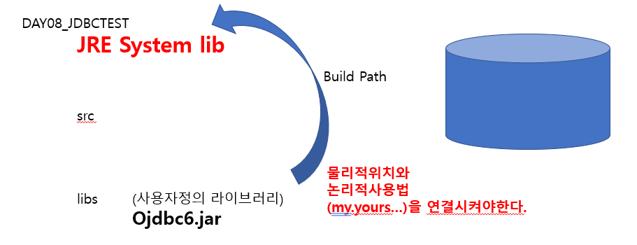 자바 오브젝트 정보 -> JDBC 드라이버가 커넥션, 커넥션해제, 데이터를 보내고 받고 하는 일련의 처리 과정을 중간에서 대신 해줌