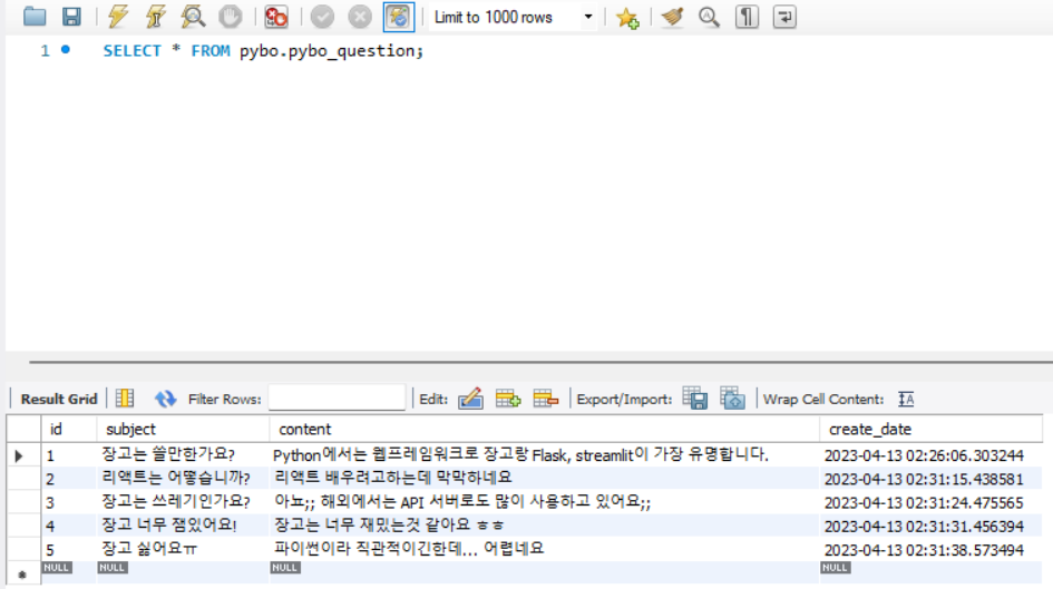 create database pybo;