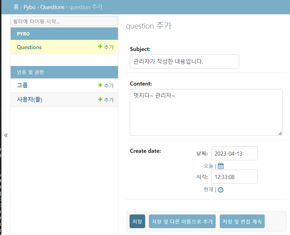 모델에 Question Class를 등록합니다.