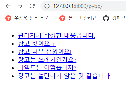 http://127.0.0.1:8000/pybo/ 해당 링크로 연결해 봅니다.