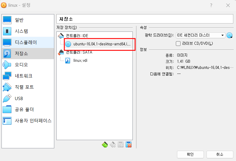 - 이름 Ubuntu - 버전 Ubuntu(64-bit)로 수정