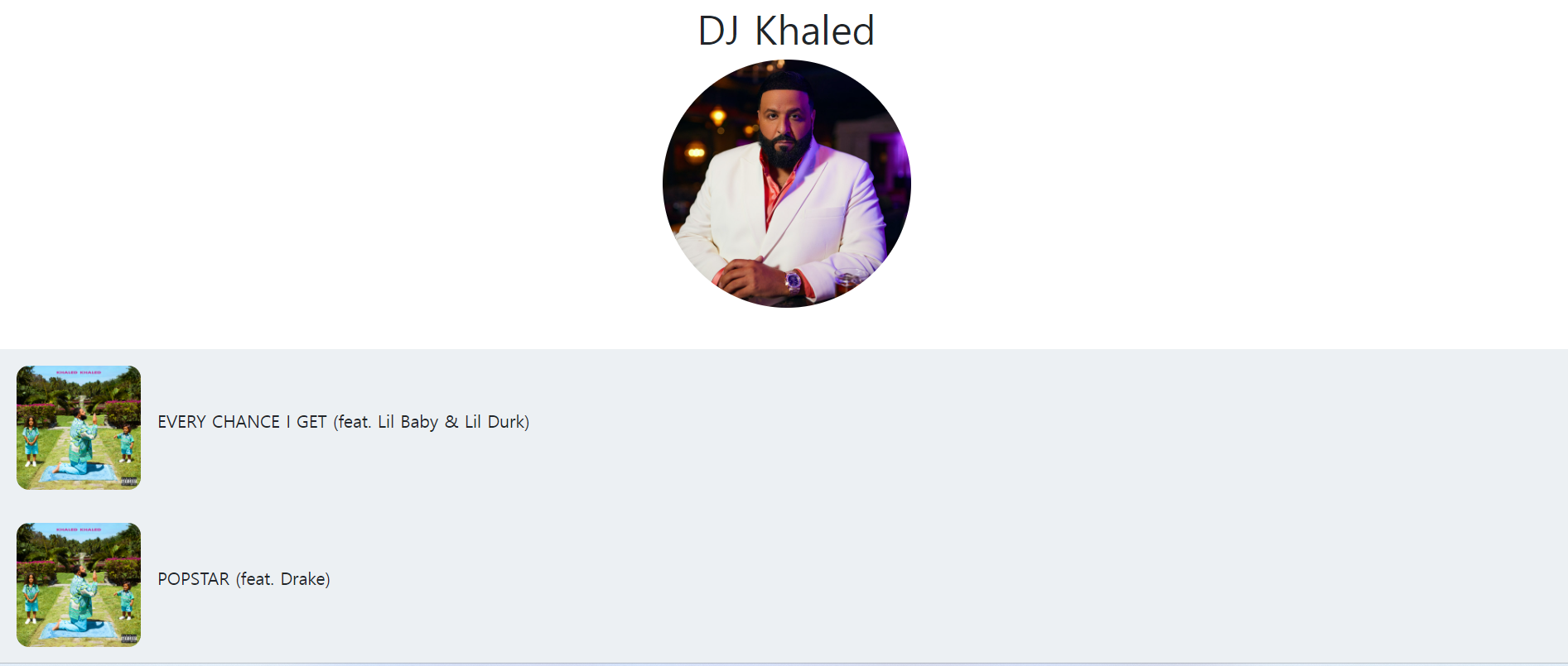 아직은 프론트도 구현이 되지 않았고, 데이터도 1000개의 음악 정도만 들어간 상태라 빈약합니다.., 일단은 지금 뼈대를 만들어두고 있는 상황이고, 데이터가 들어가면 조금 더 많은 데이터를 보여줘야해서, 아직은 구현되지 않은 페이징 기능도 붙을 예정입니다.