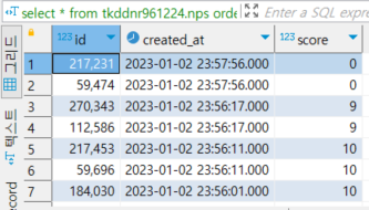 select * from tkddnr961224.nps order by created_at DESC;