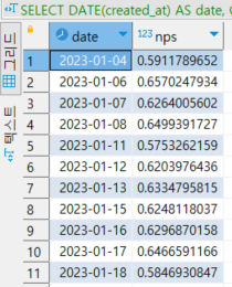 저번 포스팅에서 만들어둔 nps 테이블을 활용하여 다음 SQL을 준비합니다.