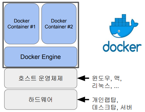 - Docker Engine만 실행하면 그 위에서 다양한 소프트웨어들을 충돌없이 실행 가능합니다.