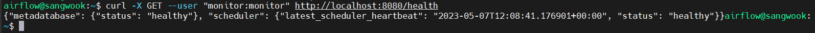 - curl -X GET --user "monitor:MonitorUser1" http://[AirflowServer]:8080/health