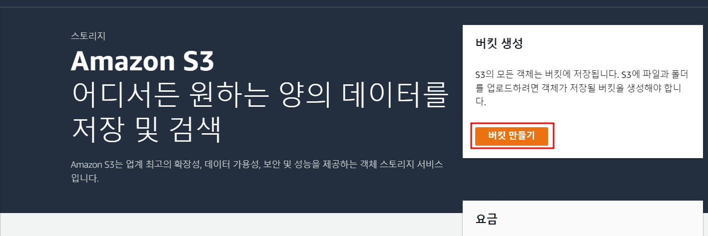 (1) 먼저 S3 사이트에 접속하고 버킷 만들기를 클릭합니다.