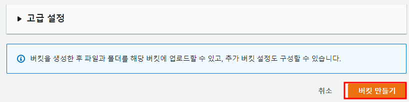 (4) 다른 옵션은 그대로 두고, 버킷을 만듭니다.