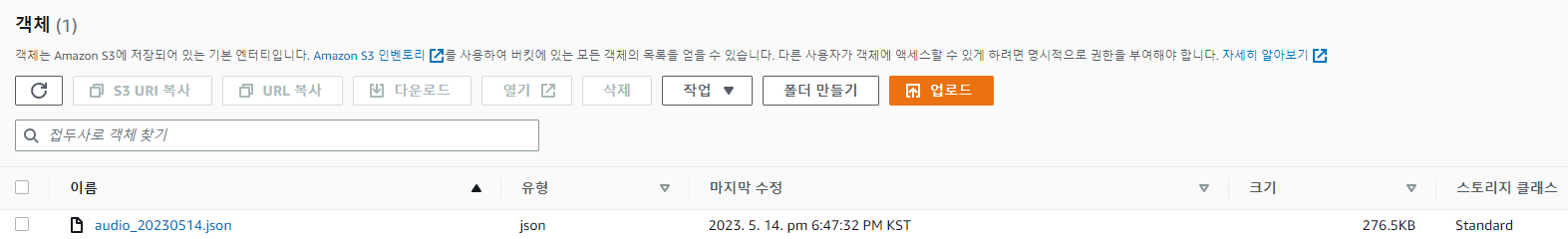 key = 's3 내에 저장될 파일명' # 폴더 안에 넣고 싶다면 폴더/파일명으로 입력
