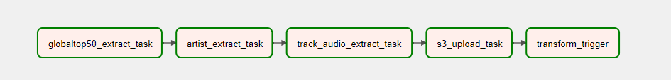 tirgger Dag를 제외하면 전부다 PythonOperator로 작성했습니다. 그런데 이 과정에서 json 파일을 로컬에 저장할까 말까하다가, 아무래도 곧바로 S3에 쏘는 것보다는 로컬에 저장하고, S3에 업로드하는게 조금 더 안정적일 것 같아서 일단은 이렇게 진행했습니다. 그런데, 여기서 비효율이 발생한다고 하면 언제든지 고칠 생각입니다. 일단은 아직 구현은 안됐지만, 로컬에 쌓인 데이터는 BashOperator를 통해서 주기적으로 삭제해줄 예정입니다. 대표적으로 track_audio_extract_task 코드로 구조를 한번 리뷰해보겠습니다.