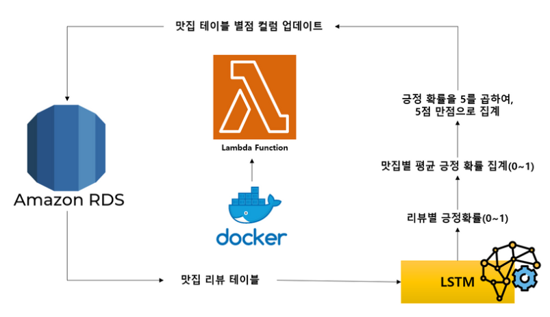 - (3) Aws Lambda 활용, 딥러닝(Tensorflow) 모델을 활용한 별점 업데이트 파이프라인 설계 및 구축
