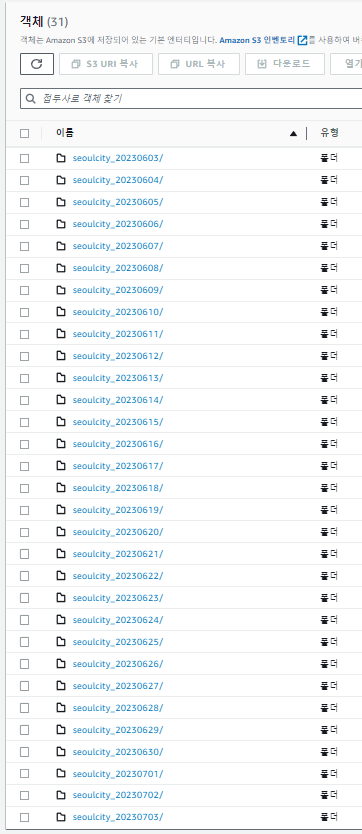 S3에 먼저 저장한 이유는, Backfill을 위함인데, 혹시 transform, load 단계에서 혹시 모를 에러가 발생할 수 있어, s3에 먼저 적재하였습니다. s3에는 다음과 같은 구조로 적재하였습니다.