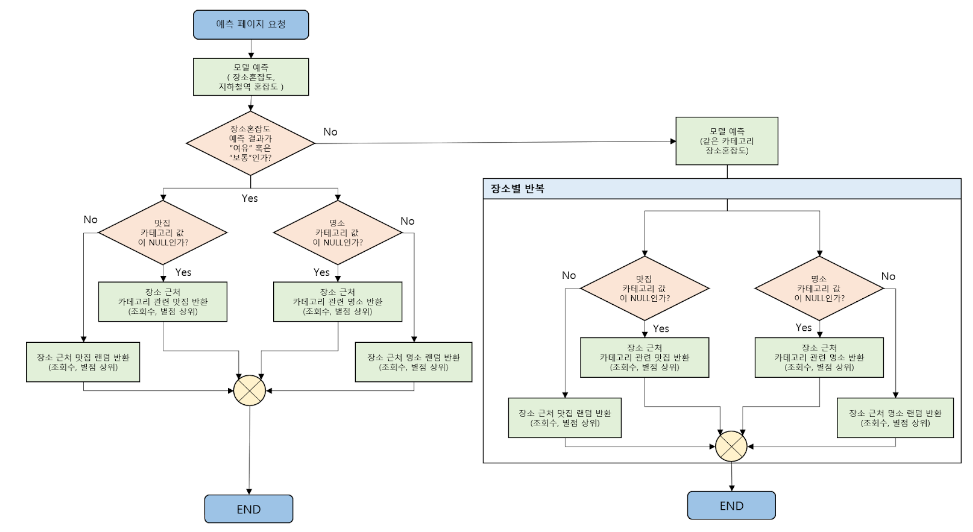 발표 당시 피드백 받았던 건데, 우리가 사용하는 서비스로 인해서 해당 장소가 혼잡해질 경우, 그거에 대한 대처방안은 있느냐?라는 말씀을 들었습니다. 솔직하게 거기까진 생각하지 못했다고 말씀 드렸으나, 나중에 생각해보니 혼잡도와 맛집, 그리고 문화행사를 엮는 일련의 이 과정에 조금 더 세밀한 기획이 필요했을 것 같다고 생각이 들었습니다.
