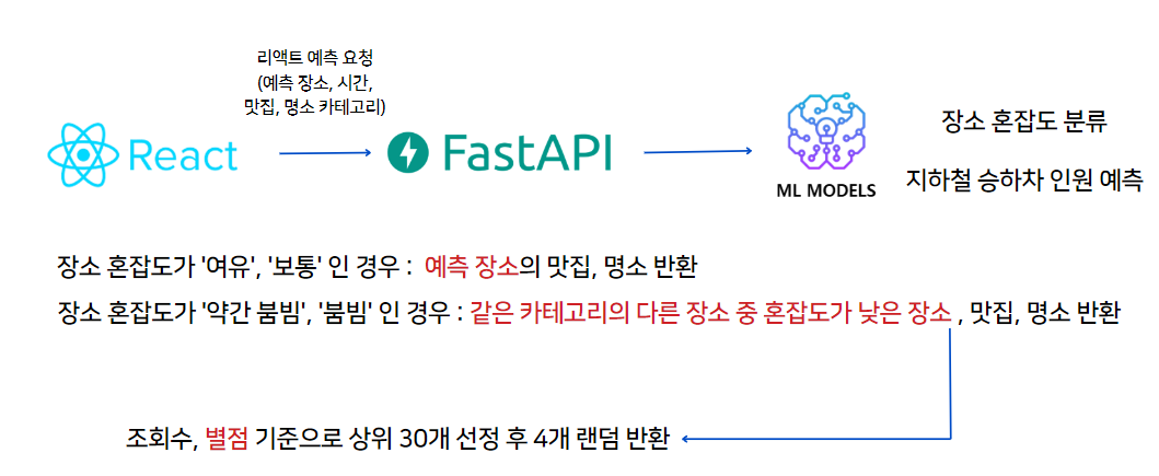서울시 혼잡도 기반 장소 추천 프로젝트 2023.05.22 ~ 2023.06.30 동안 진행했던 프로젝트입니다. 약 10일 정도는 spring 공부를 위해 시간을 사용했으며, Backend 개발에 사용한 시간은 4주입니다. Playdata En