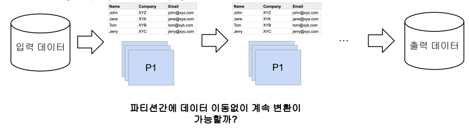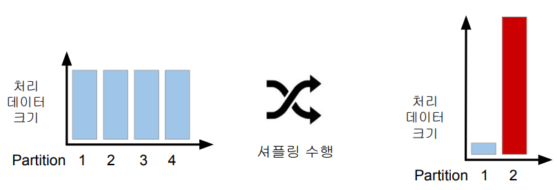 - 셔플링 : 파티션 간에 데이터 이동이 필요한 경우 발생