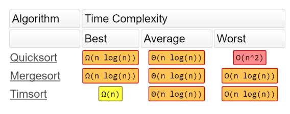 최적의 해를 찾는 과정에서, 정렬을 대부분 먼저 사용합니다. 정렬을 사용할 때 파이썬 내장 sorted 메소드를 사용하면 최악의 시간복잡도는 O(n)이지만 대부분의 경우 O(nlogn)의 시간복잡도를 가집니다.