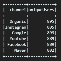 (5) SparkSQL로 처리하기(채널별 Unique User)