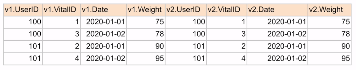 JOIN raw_data.Vital v2 ON v1.vitalID = v2.vitalID;