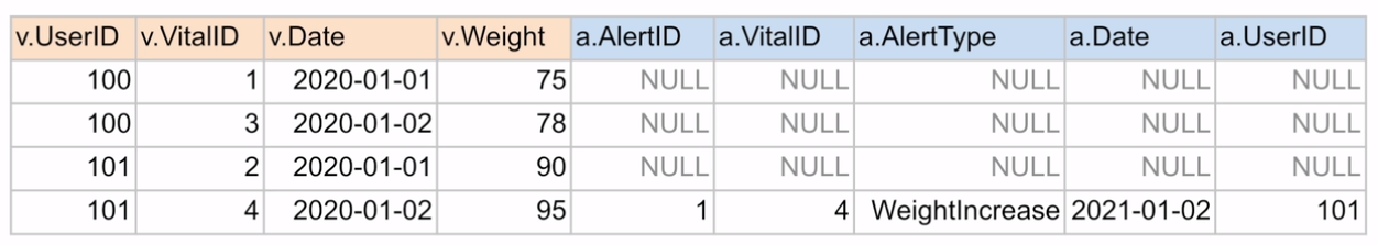 LEFT JOIN raw_data.Alert a ON v.vitalID = a.vitalID;