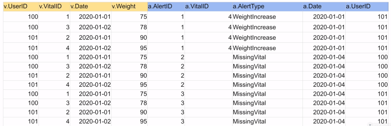 SELECT * FROM raw_data.Vital v CROSS JOIN raw_data.Alert a;