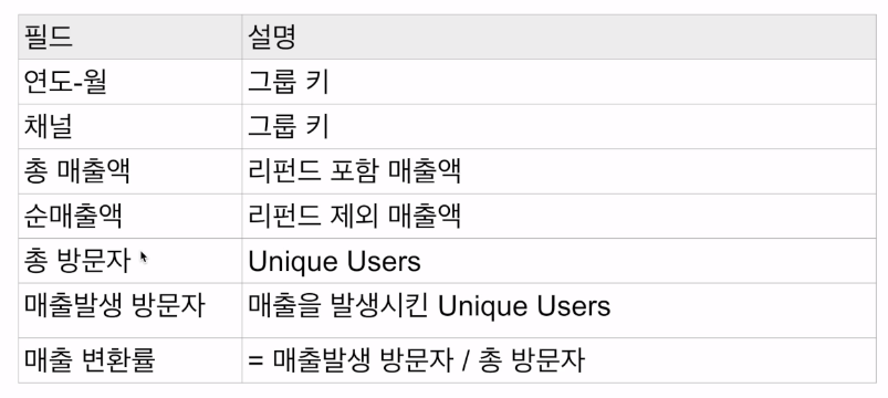 7.월별 채널별 총 매출액 (리펀드 포함), 총 방문자, 매출 발생 방문자, 전환율 계산