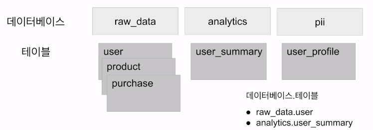 - 데이터들은 데이터베이스라 부르는 폴더와 같은 구조로 관리(2단계)