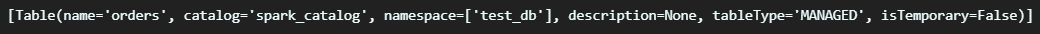 spark.catalog.listTables()