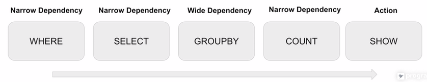 - WHERE, SELECT는 셔플링 없이 파티션에서 독립적으로 작업을 수행할 수 있다.