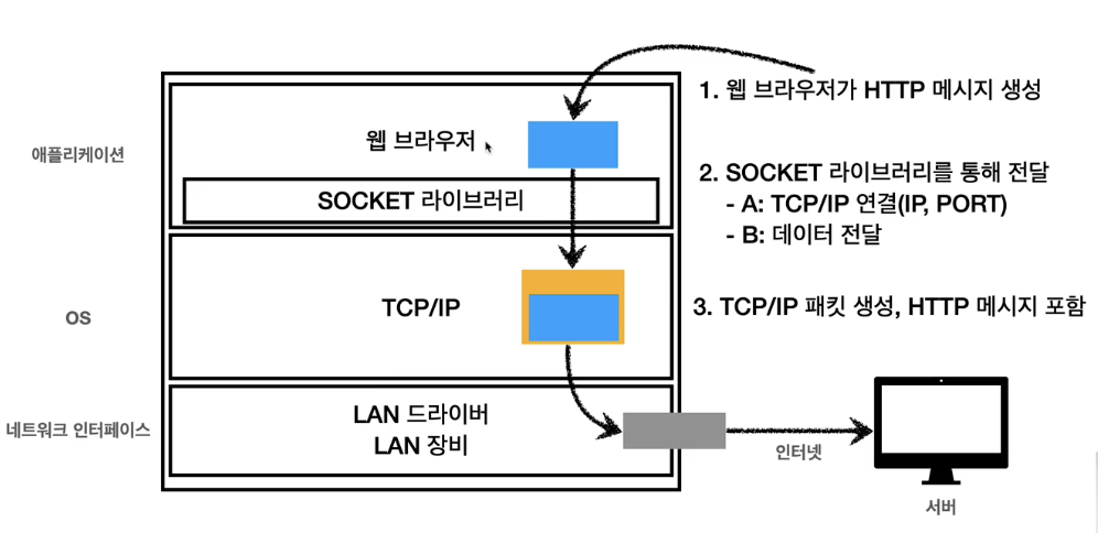 - 소켓 라이브러리를 통해 OS 통해 TCP/IP 계층에 전달을 해야함