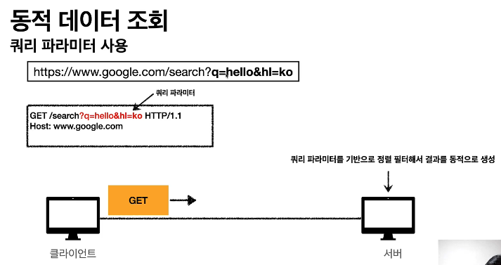 - GET은 쿼리 파라미터 사용해서 데이터를 전달