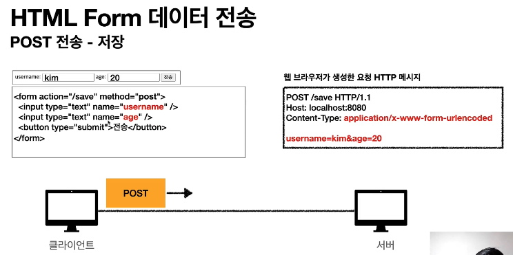 - 전송을 누르면, 웹브라우저가 form의 데이터를 읽어서 http 메시지를 생성해준다.(오른쪽 상자)