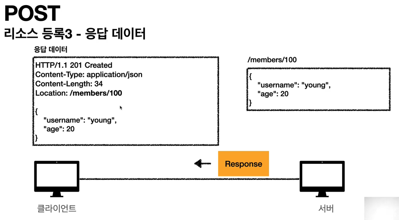 - 서버가 새로 등록된 리소스 URI를 생성해준다.