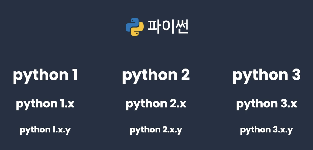 파이썬 언어와 인터프리터는 한 종류만 있는게 아닙니다. 일단 기본적으로는 python1, python2, python3이 있습니다. 그리고 세부적으로는 아래 버전이 있고, 도 아래 버전이 있습니다. 이렇게 서로 다른 종류를 버전이라고 합니다. 이런 것들을 바꿀 때마다 새로운 버전을 출시합니다. 파이썬 버전에서 현재 어떤 것이 문제고, 어떤 걸 고쳐나가는게 좋은 것들은 PEP(Python Enhancement Proposal)에서 제안하고, 파이썬 코어 개발자들이 이를 받아드리거나, 거절합니다.