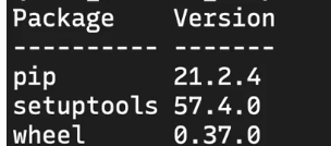 pip에는 처음만들 때 생기는 자동 다운로드 패키지를 제외하고는, 어떠한 패키지도 다운로드 되지 않았습니다.