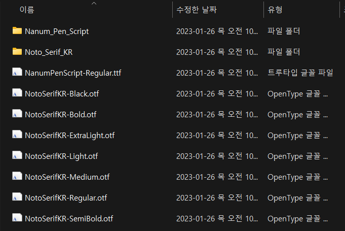 - 폰트 다운로드 후 특정 경로 저장(예시로는 C:/python/font)