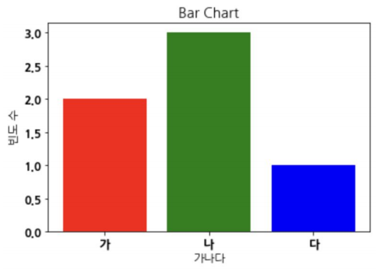 각 bar 마다 색상을 적용할 수 있습니다. 적용하고 싶은 색상을 데이터 순으로 리스트로 생성합니다.