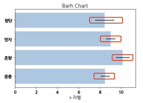 가로 방향으로 바 차트를 그리려면 barh 명령을 사용합니다.