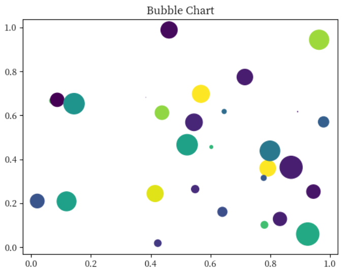 데이터가 2차원이 아니라 3차원 혹은 4차원인 경우에는 점 하나의 크기 혹은 색깔을 이용하여 다른 데이터 값을 나타낼 수 있습니다. 이런 차트를 버블 차트(bubble chart)라고 합니다. 크기는 s 인수로 색깔은 c 인수로 지정한다.