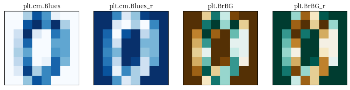 아래 예제는 cmap 키워드 인수를 사용하여 다양한 색상으로 변경된 결과를 출력하고 있습니다.