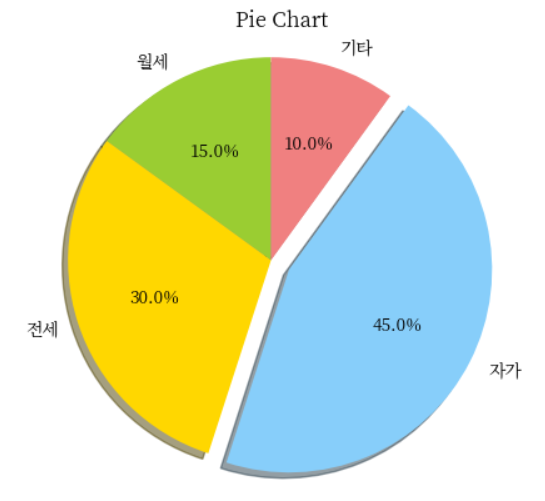 카테고리 별 값의 상대적인 비교를 해야할 때는 pie 명령으로 파이차트(pie chart)를 그릴 수 있습니다.