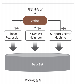 동일데이터, 서로 다른 알고리즘, 최종결정은 보팅(투표)