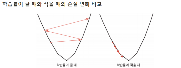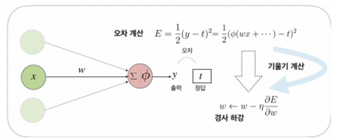- 손실함수의 값을 최저로 하기 위해 매개변수를 미분하고, 학습률을 적용하여 매스텝마다 변경함