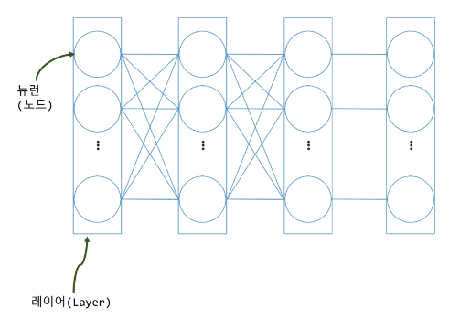 - 레이어(LAYER) : 여러 노드가 일렬로 존재하는 가상의 네모박스