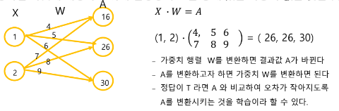 - X = 입력, W = 가중치, A = TARGET(정답)